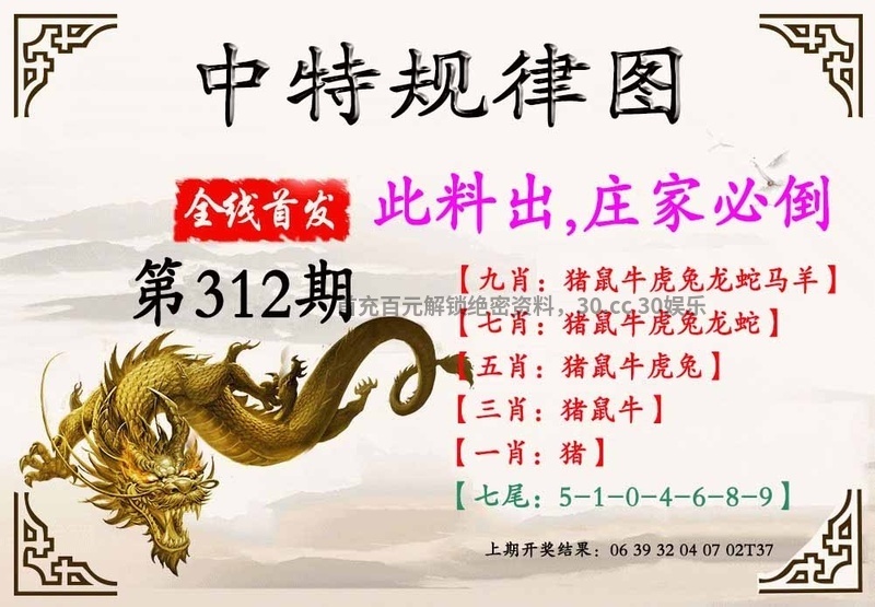 316期:九肖★狗鸡牛鼠猪羊猴马兔★开:發00中